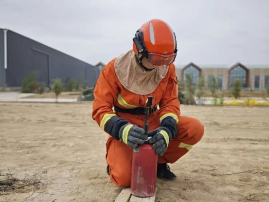 熟练操作装备是消防的核心技能。“启动、风速控制、协同推进,每一个环节都要精准无误。”指战员李世科正在反复练习风力灭火机的操作。只见他动作娴熟,强大的风力精准地扑向模拟火点。与此同时,在另一片训练区域,水泵分队的训练正如火如荼地进行着。指战员们协同配合,快速铺设水带、启动水泵、连接接口,一系列动作紧张有序,一条条白色的“水龙”从枪口喷涌而出,精准命中模拟火点。这种以水灭火的方式是遏制火势的关键手段,通过反复锤炼水泵的快速部署和远程输水能力,确保了在复杂地形下也能迅速建立起一条扑救火灾的“生命线”。