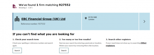 它手握英国FCA、澳洲ASIC、开曼CIMA三大顶级牌照,尤其是英国FCA,我特意去圈子里问过老交易员,大家都说“受FCA监管的平台,至今没出过跑路案例”。但光听别人说不够,我还自己跑了一趟流程:打开FCA官网(https://register.fca.org.uk/s/),输入EBC给的监管号927552,点“Firms”后,页面直接跳出它的备案信息,连“Firm Status”都清清楚楚写着“Authorised(授权)”和“Regulated(受监管)”。